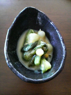 今日は同じく庭に生えてきた『のびる』をぬたにしました。